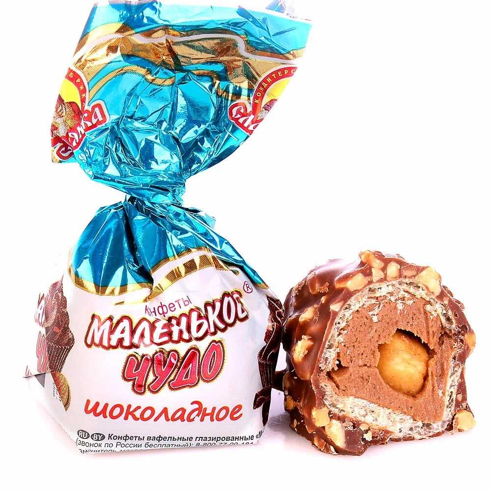 Вафельные конфеты с начинкой на основе	молочной помады в шоколадной глазури