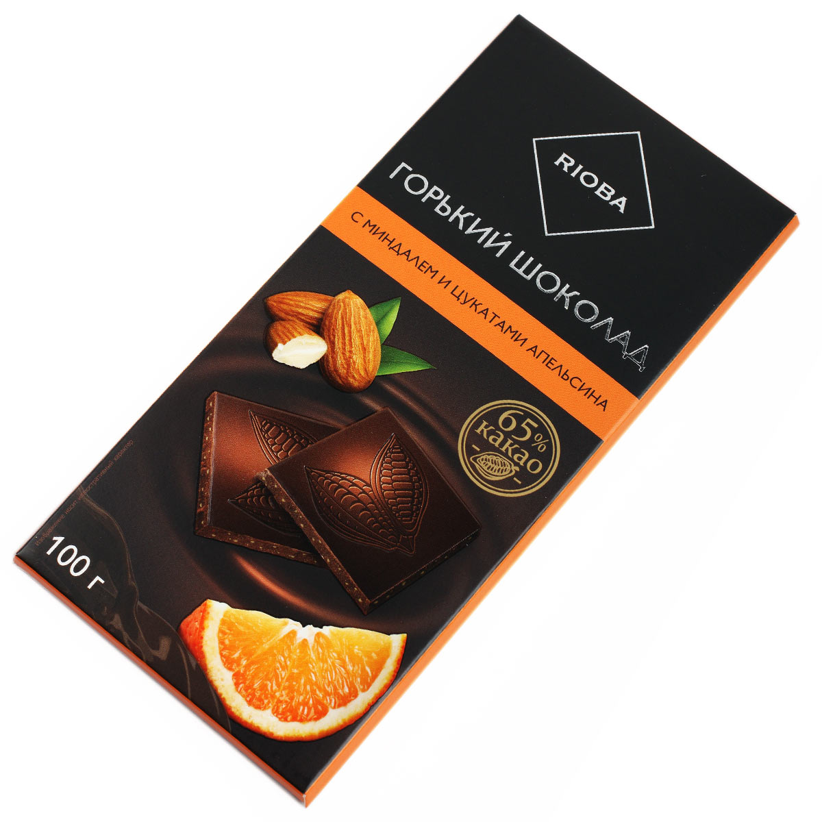 RIOBA шоколад горький с миндалем и цукатами апельсина 100г