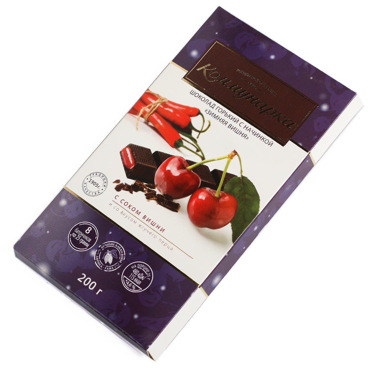 КОММУНАРКА шоколад горький с начинкой Зимняя вишня 200г